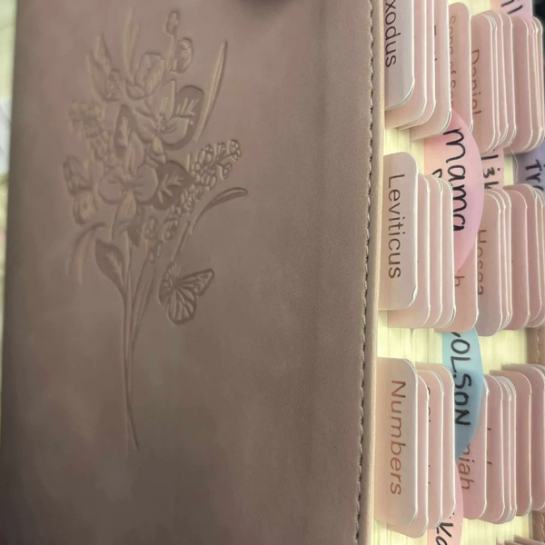 At Bloom & Bible LLC, our mission is to help individuals deepen their faith through personalized, loaded Bibles. We believe that everyone should have a unique connection with God, and our Loaded Bibles are designed to facilitate that journey. Each Bible is prayerfully customized with tabs, categories, and personal touches to help make your time in God’s Word even more meaningful. We are so excited and honored to walk alongside you in your journey of faith.